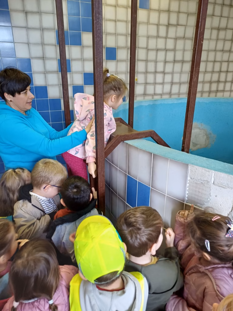 Tam jih je sprejela predstavnica JKP Žalec, ga. Alenka Žerdoner Kalan, skrbnica kakovosti pitne vode. S pomočjo sodelavcev je otrokom predstavila, kako voda iz vodnega črpališča po ceveh priteče do naših domov in pip. Ob tem je poudarila tudi pomen skrbi za varovanje okolja in vodnih virov.